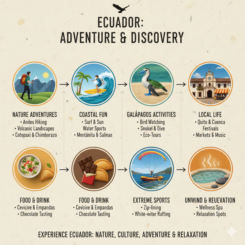 Ecuador is packed with exciting activities that combine nature, culture, and adventure. Let's check out what both the locals and tourists are up to: