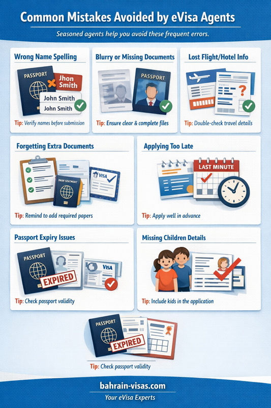 - Tips to the agent: bahrain-visas.com verifies your name prior to submission.