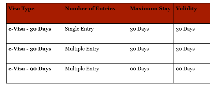 Depending on your travel plans, you can choose from three main types of eVisas. Each has specific rules regarding how long you can stay and how many times you can enter the country.