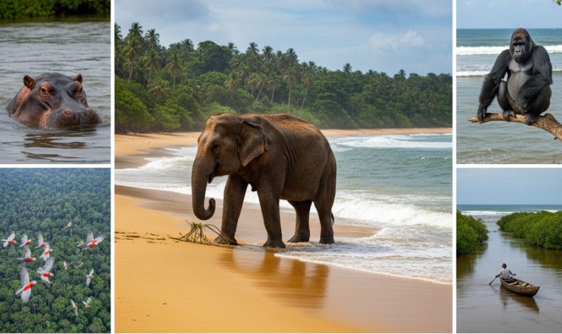 - Wildlife includes forest gorillas, chimpanzees, and various amphibians and reptiles.