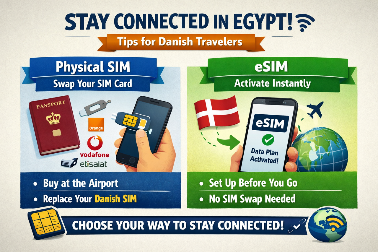 Danish travelers have two main options when it comes to getting connected while in Egypt: