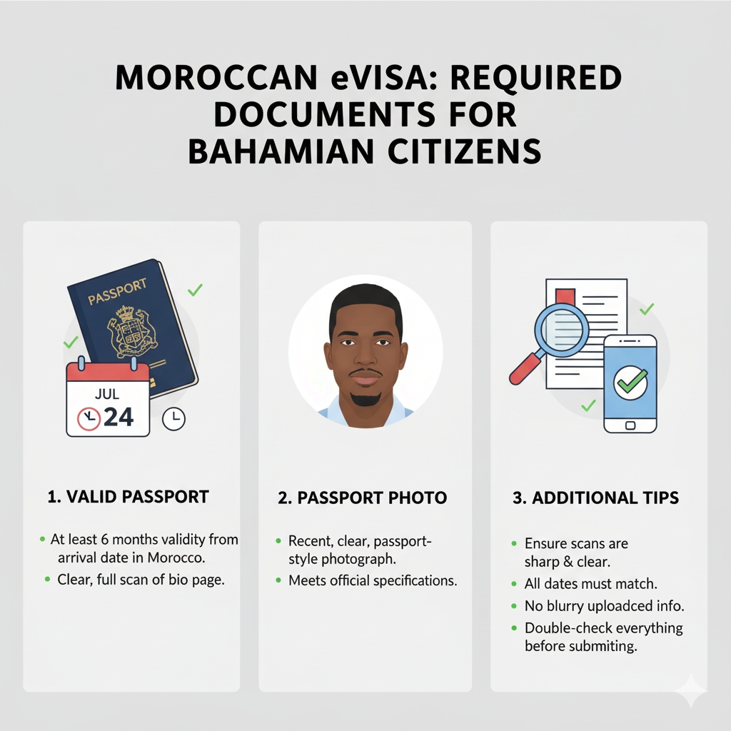 Which documents do Bahamian citizens need for a Moroccan eVisa?