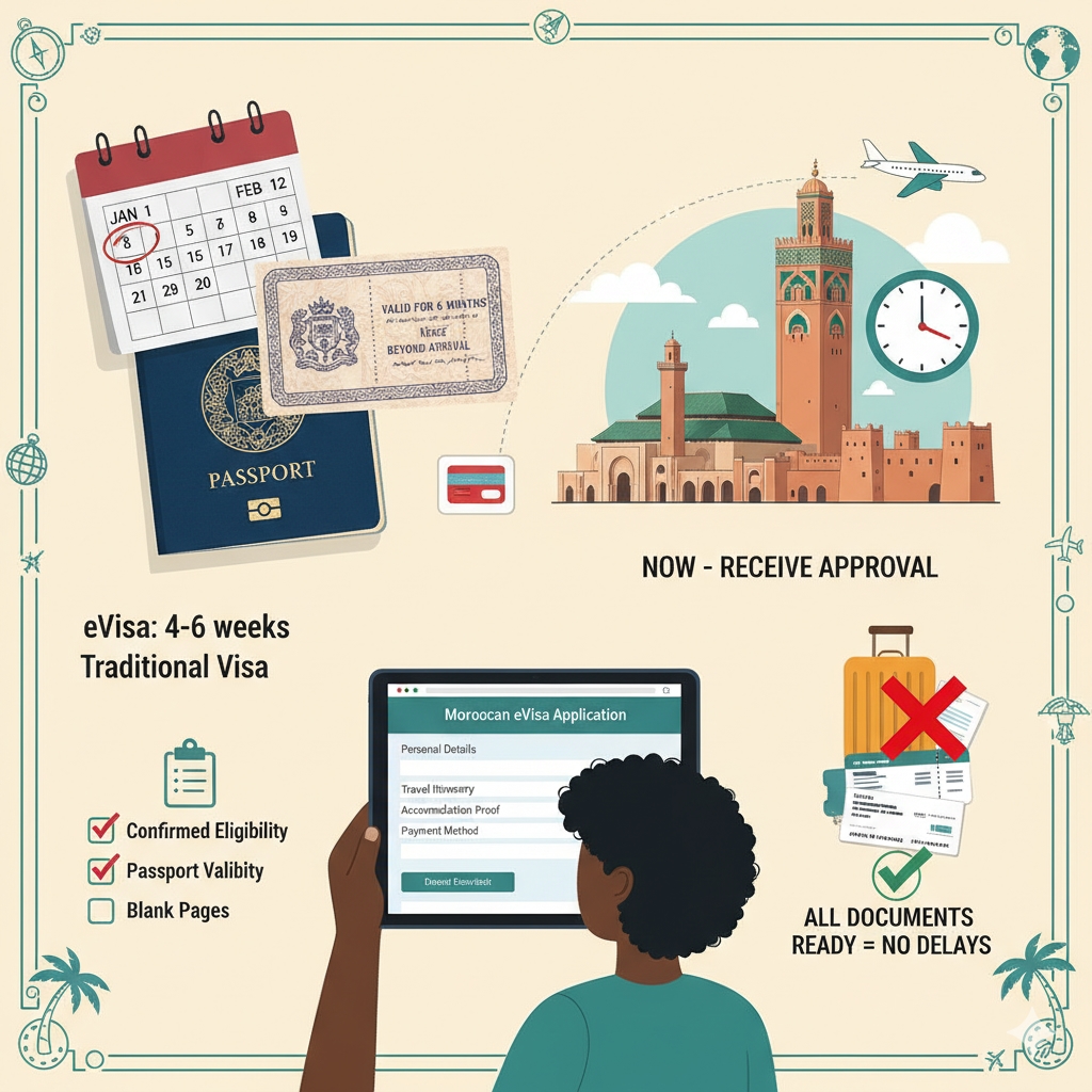 If the Morocco eVisa route applies, some sources say processing can take as little as a few days—but for Bahamian citizens, because eligibility is a bit less clear, it’s safer to allow at least 4-6 weeks.